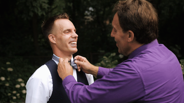 Close ups of the groom getting on the shoes and watch are great. Have someone help him with the tie and ask them if they have funny stories about the groom while they fix him up.